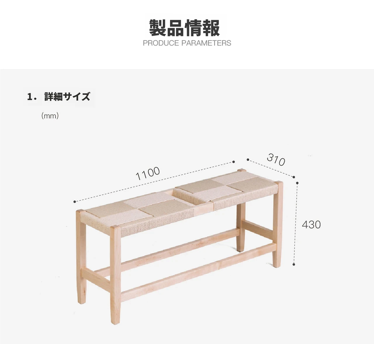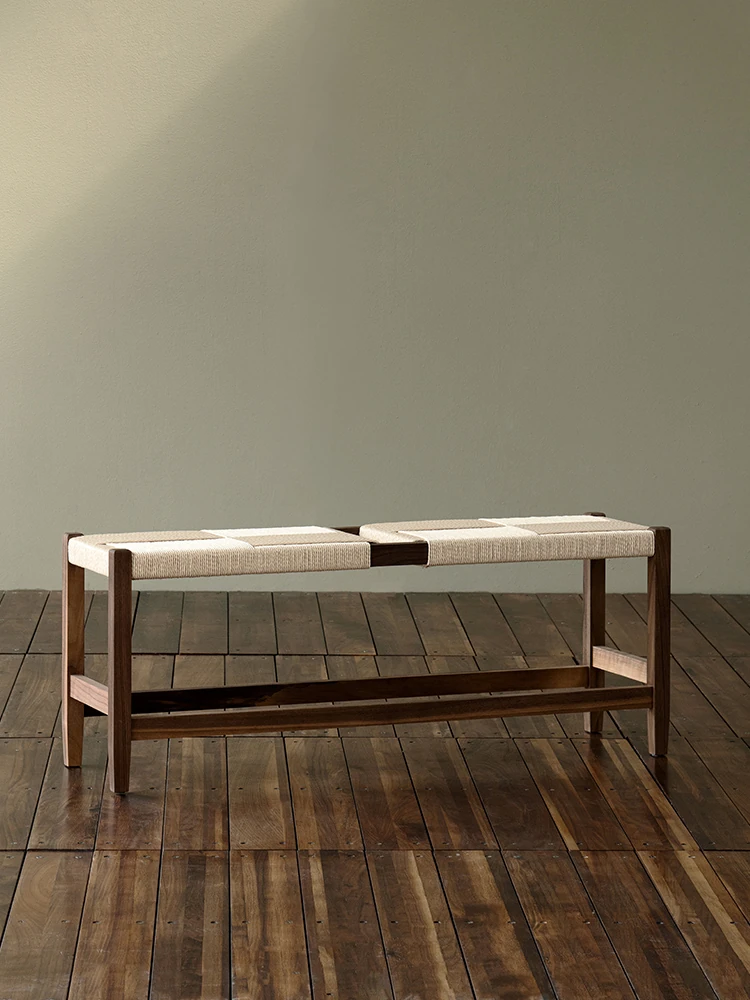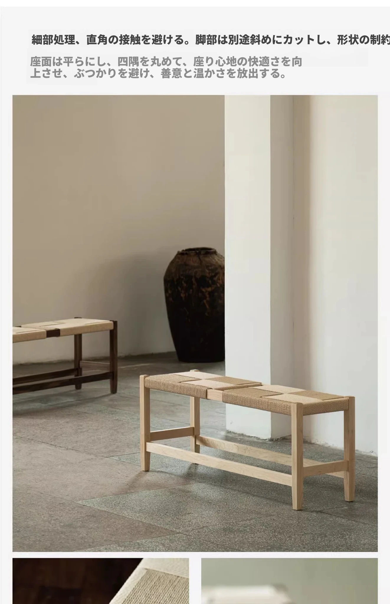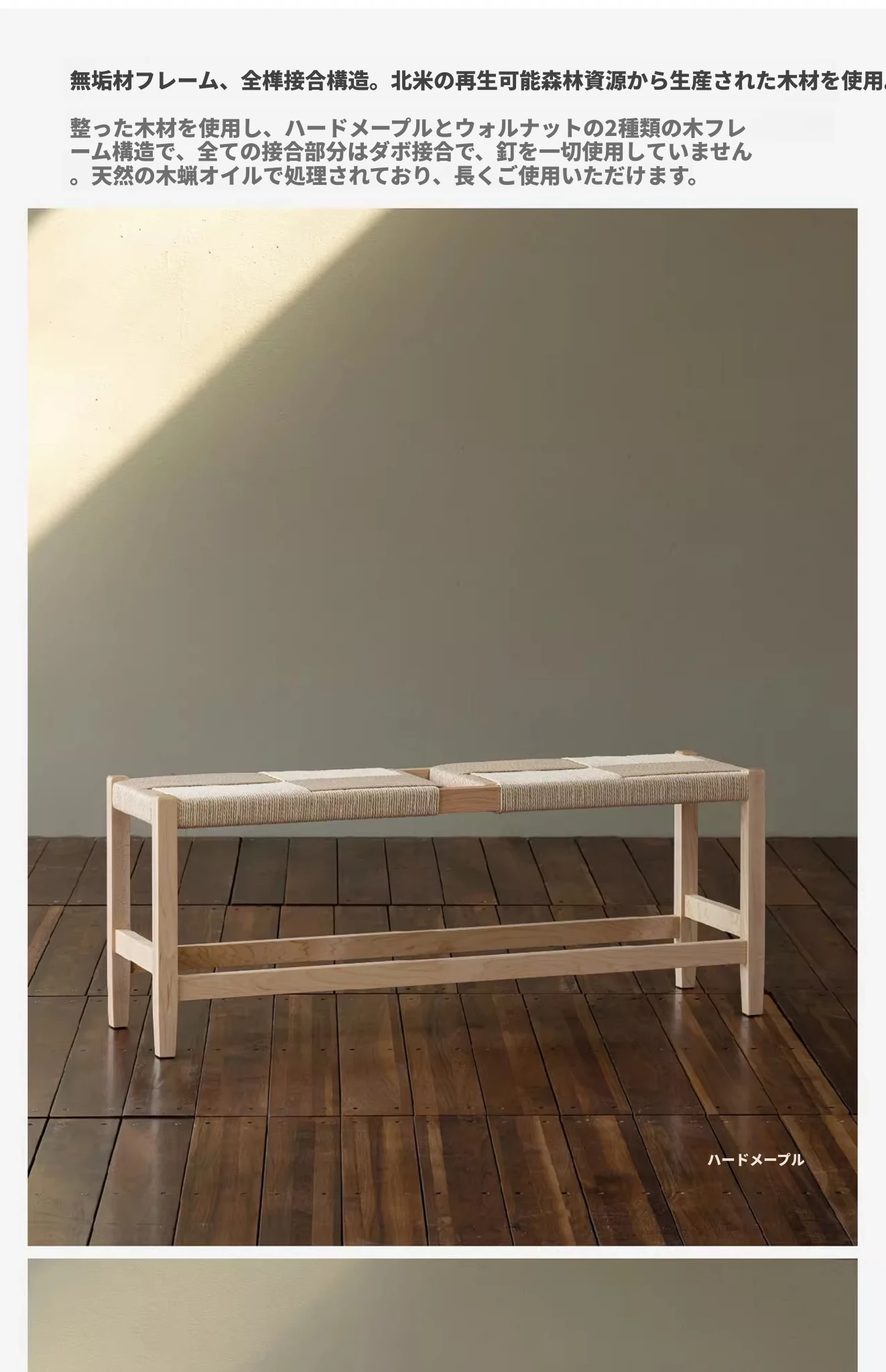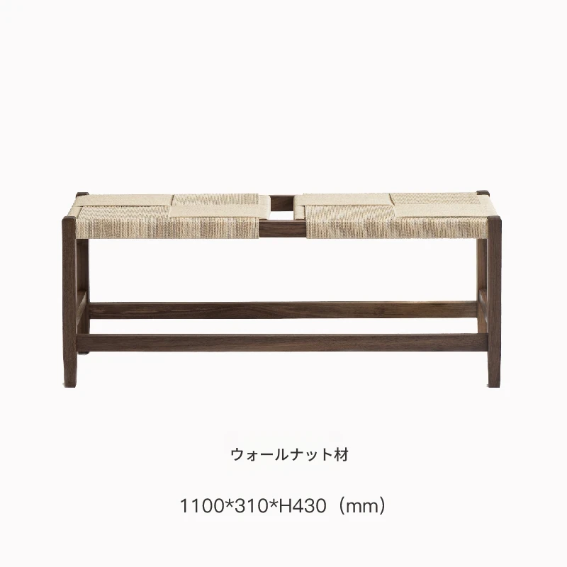 MUMO Wooden Woven Long Bench - Minimalist Solid Wood Stool for Living Room, Tea Room, or Bedroom - Perfect for Changing Shoes at Home