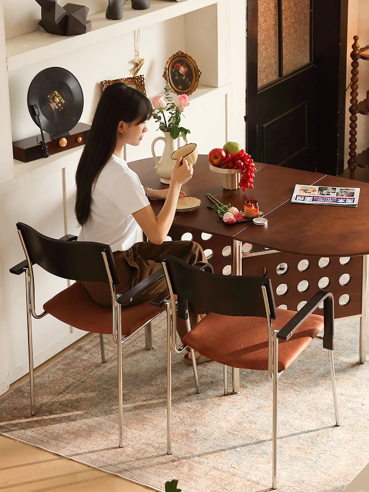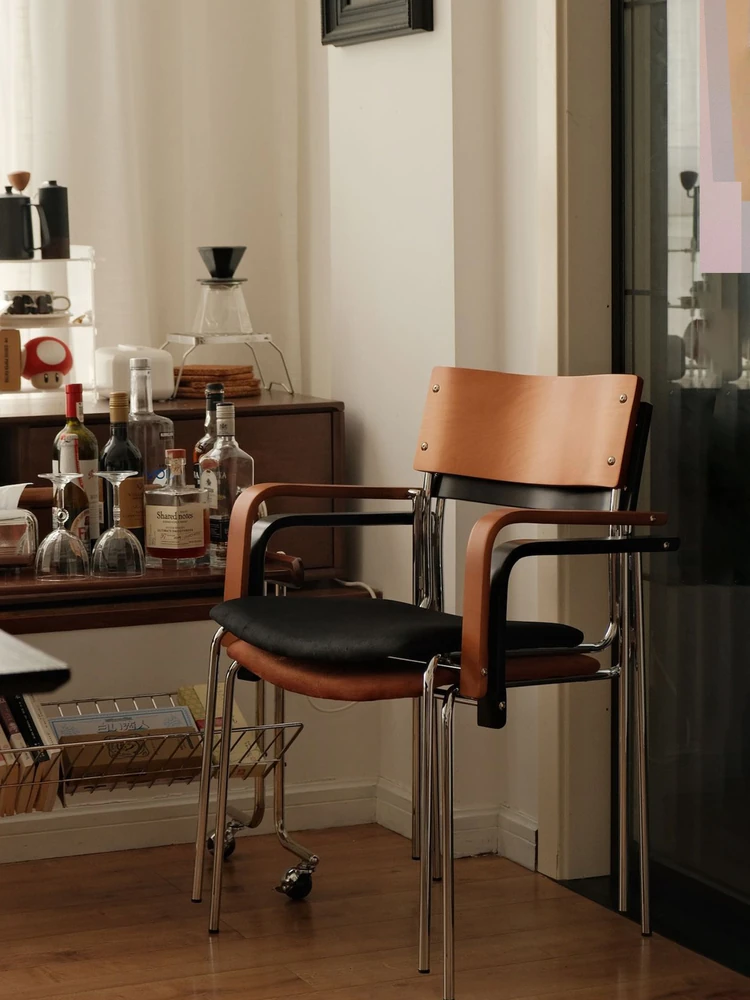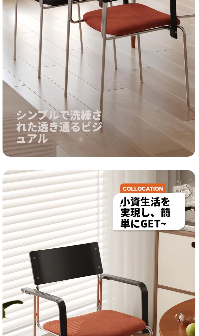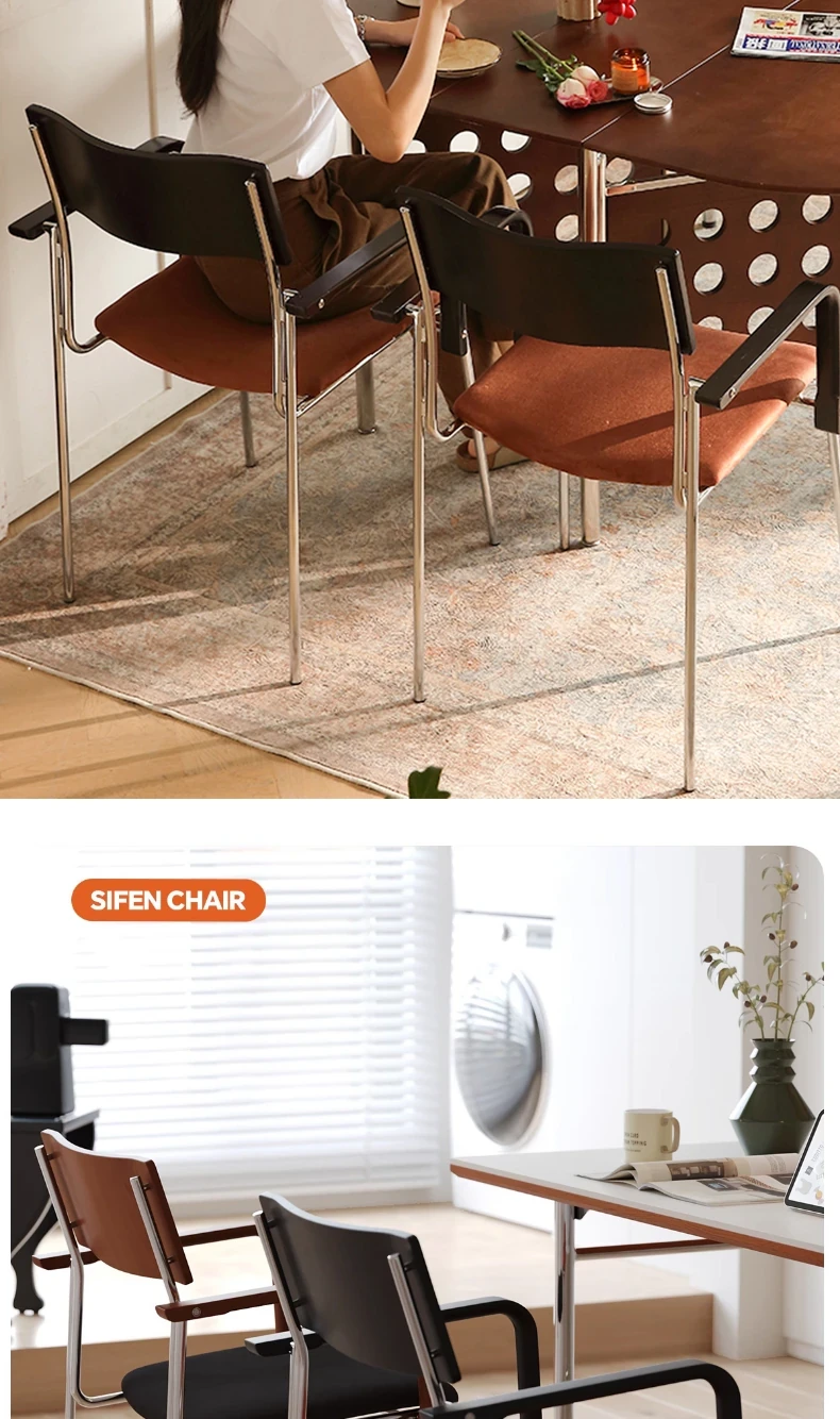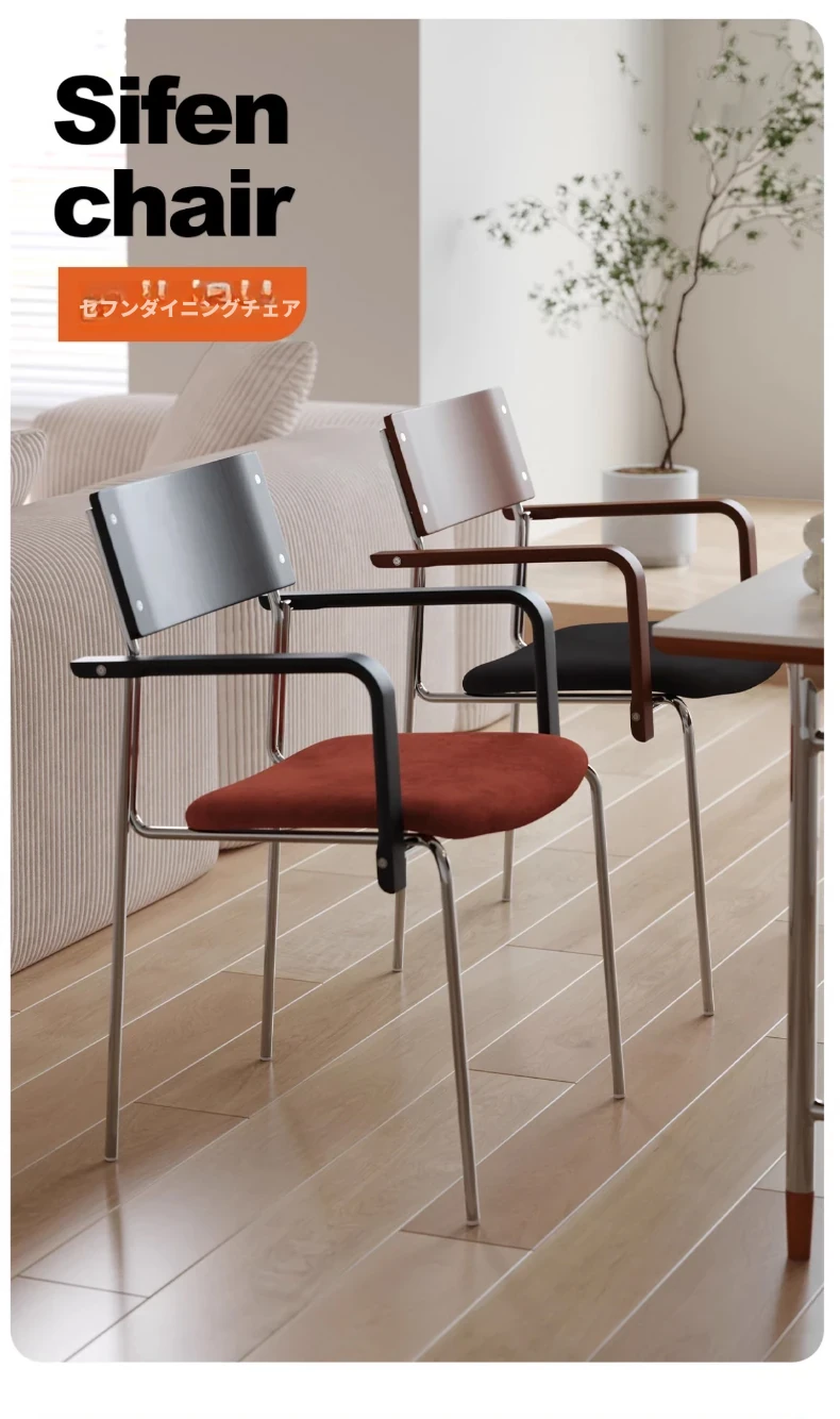 中古風バウハウスデザインのスタッキングダイニングチェア|家庭用|木製の背もたれとアームレスト付き|快適なソフトシート|耐久性のあるステンレススチール製|おしゃれで実用的な書斎やダイニングに最適!