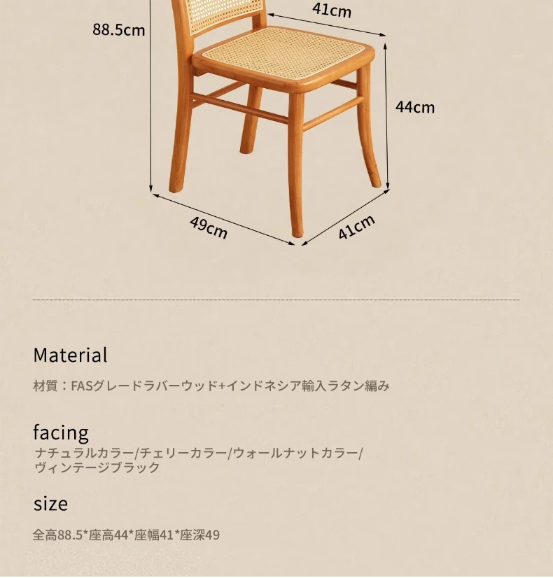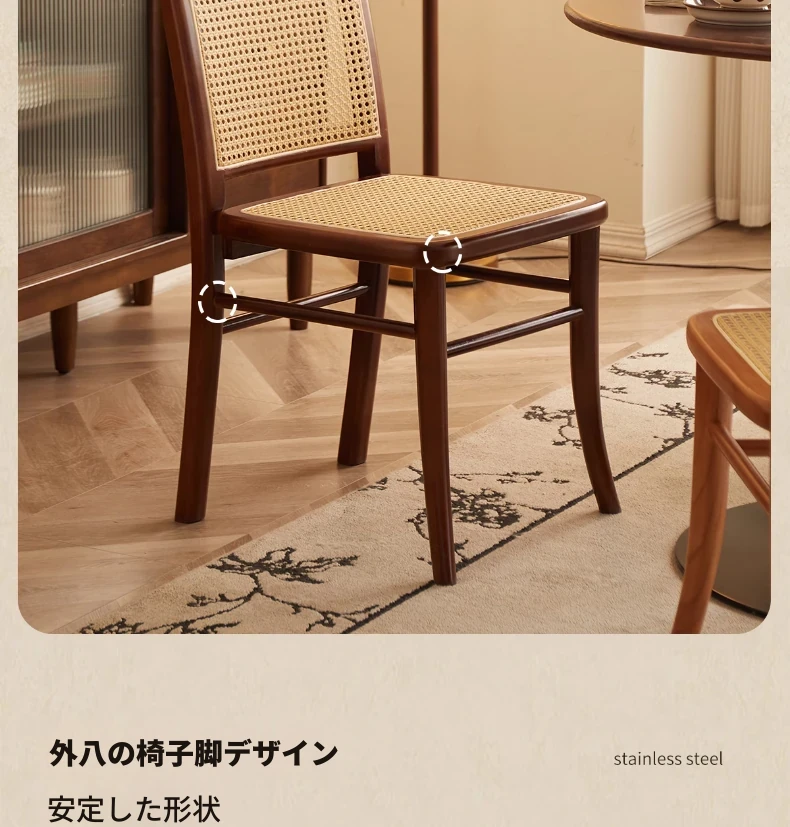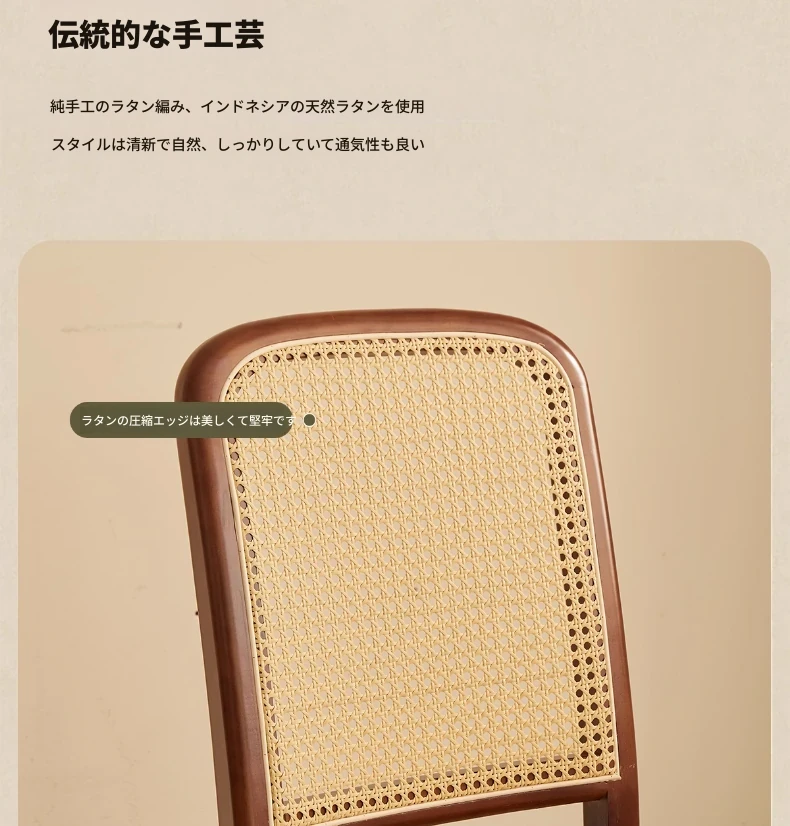 ヴィンテージ風の無垢材チェア!家庭用の籐編み椅子、レトロなデザインでダイニングテーブルやデスク、ドレッサーにもぴったり。おしゃれなカフェにも最適。快適な座り心地で、あなたの空間を素敵に演出します!