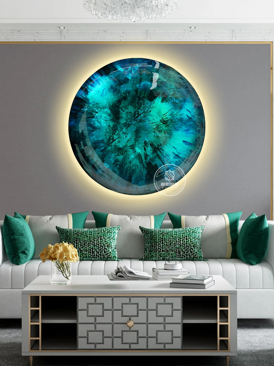 現代的な丸型クリスタルセラミック音声制御LEDライト付き立体装飾画 - 壁に映える立体的なデザインで、あなたの空間を華やかに演出します!モデルルームにも最適なインテリアアイテム!