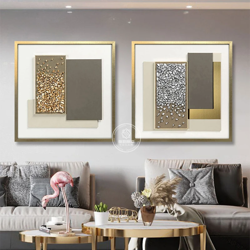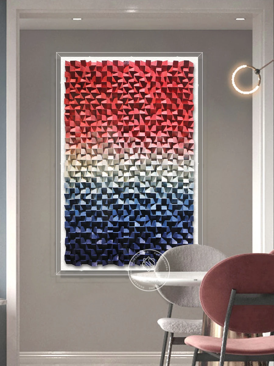 石来運転のモダンラグジュアリー玄関装飾画 - 手作り立体四角形、リビングソファの背景壁やダイニングに最適なアート作品!洗練されたデザインで空間を華やかに演出します。