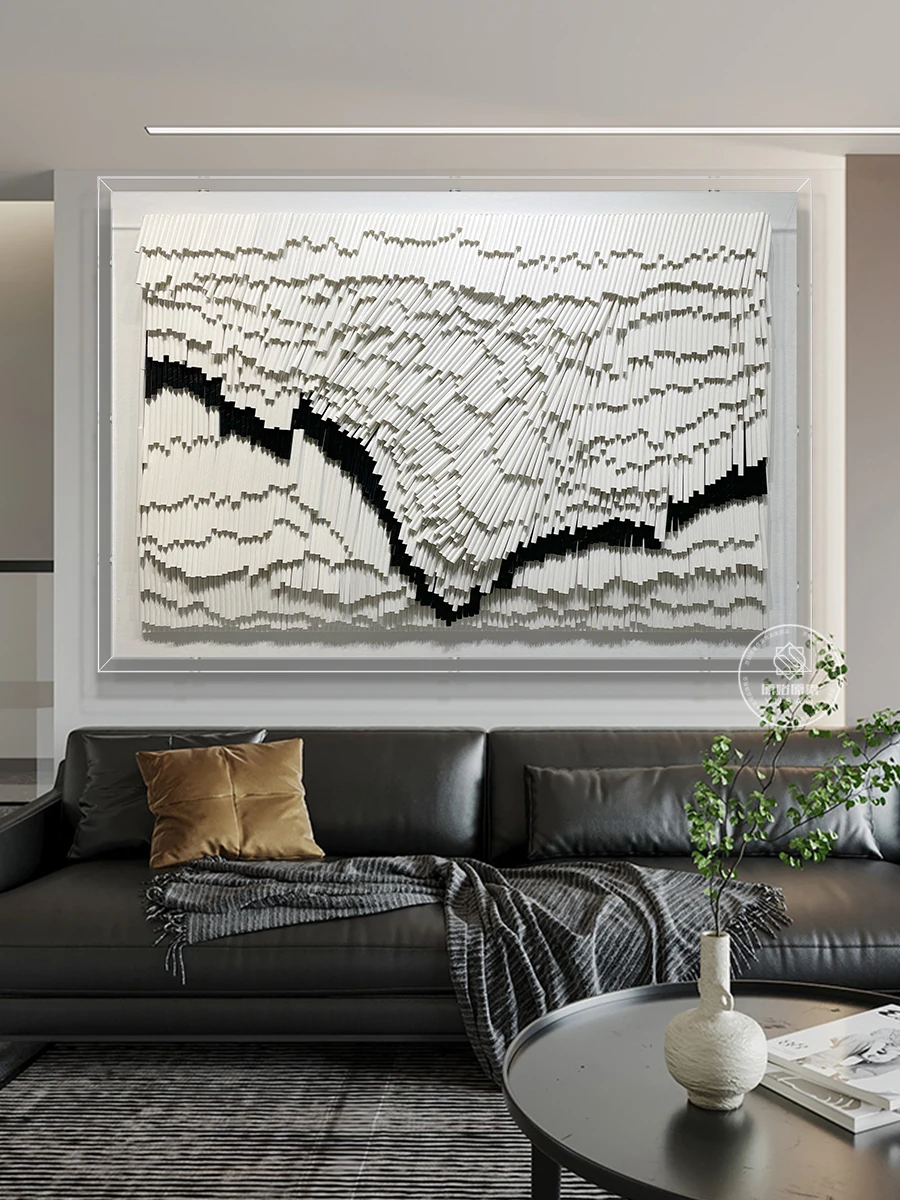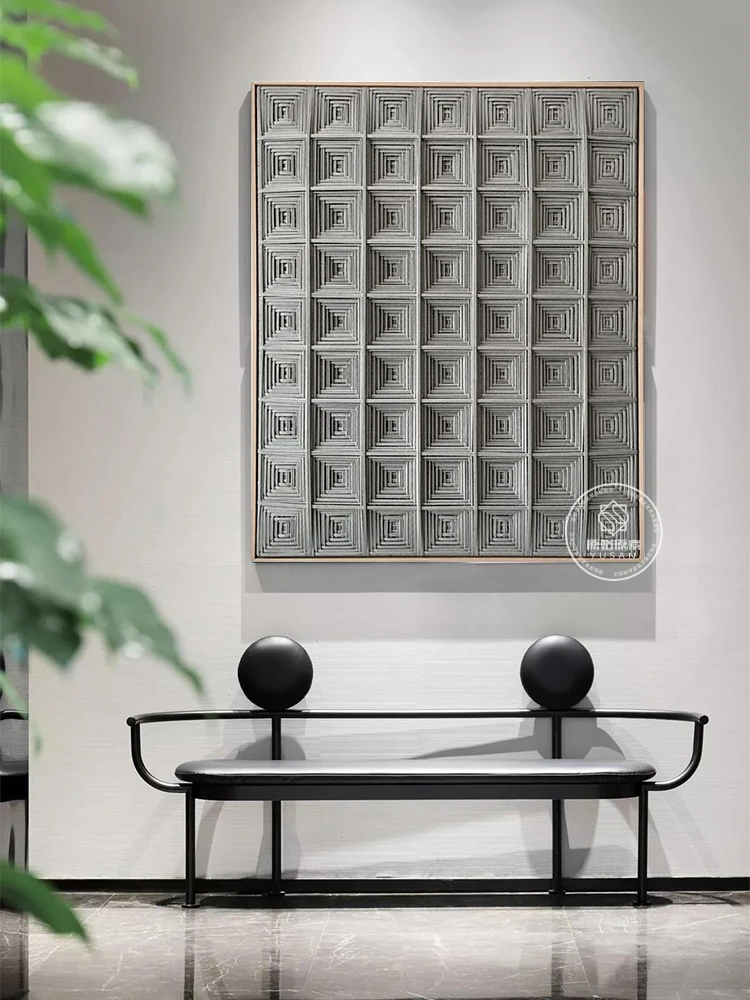 イタリアンミニマリズム3D立体浮彫りモノクロ壁画 - 玄関やリビングのソファ背景に最適なシンプルで洗練されたデコレーションアート!お部屋をスタイリッシュに演出します。