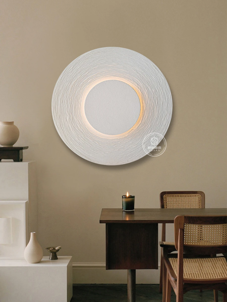 現代的なリビングルームにぴったり!立体的なテクスチャーを持つ円形LEDライト装飾画。シンプルな白の別荘スタイル、玄関を彩るおしゃれな掛け画で、空間に洗練された印象を与えます。