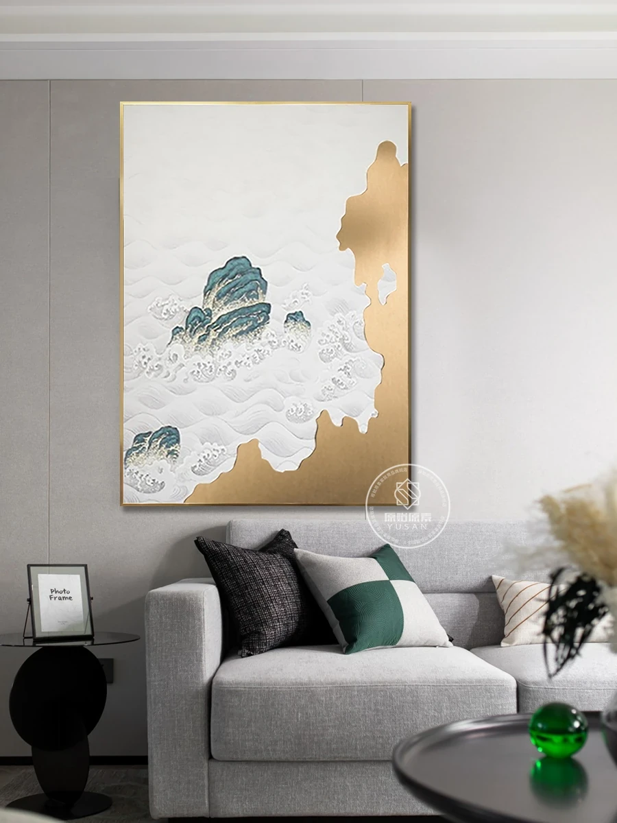 新しい中式の軽やかなラグジュアリー、立体的なテクスチャーを持つ手作りの精巧な壁掛けアート。玄関やリビングにぴったりのサンプルルーム装飾、波と礁石の美しい絵画で、空間に洗練された雰囲気を演出します。