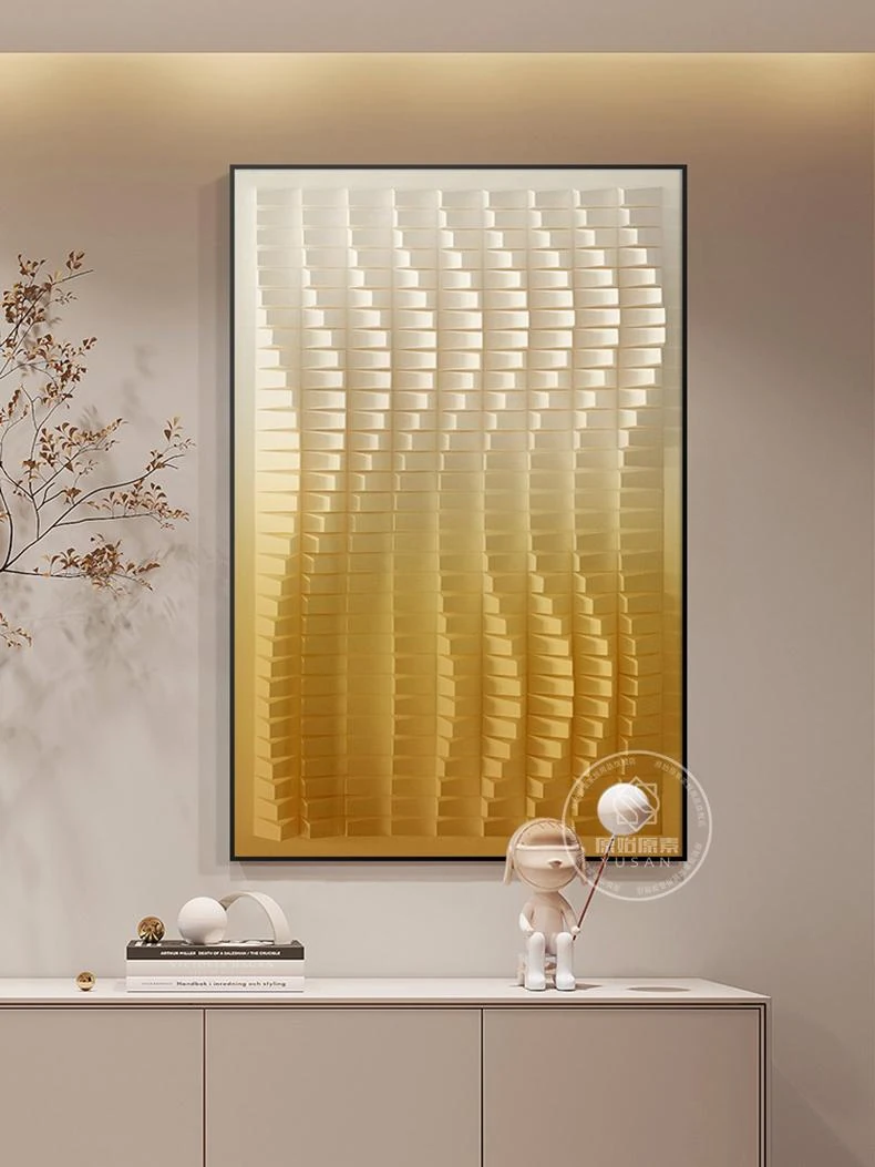 リビングルームにぴったりの長方形3D彫刻装飾画!黒と金の洗練されたデザインが、高級感あふれる別荘のソファ背景壁を演出します。抽象アートのインスタレーションで、心を奪う空間を作り出します。