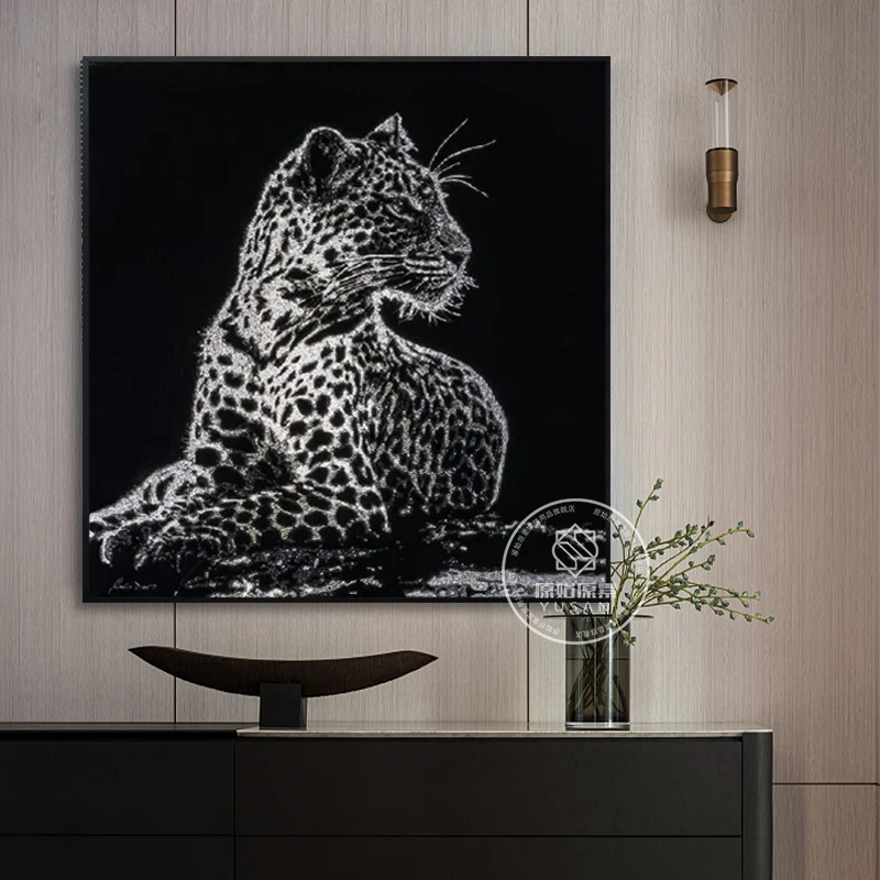 ラグジュアリーなエントランスを演出するゴールドレオパードの装飾画!洗練されたイタリアンスタイルの動物モチーフが、リビングに気品と高級感をプラス。ダイヤモンドのように輝く掛け画で、心を惹きつける空間を実現します!