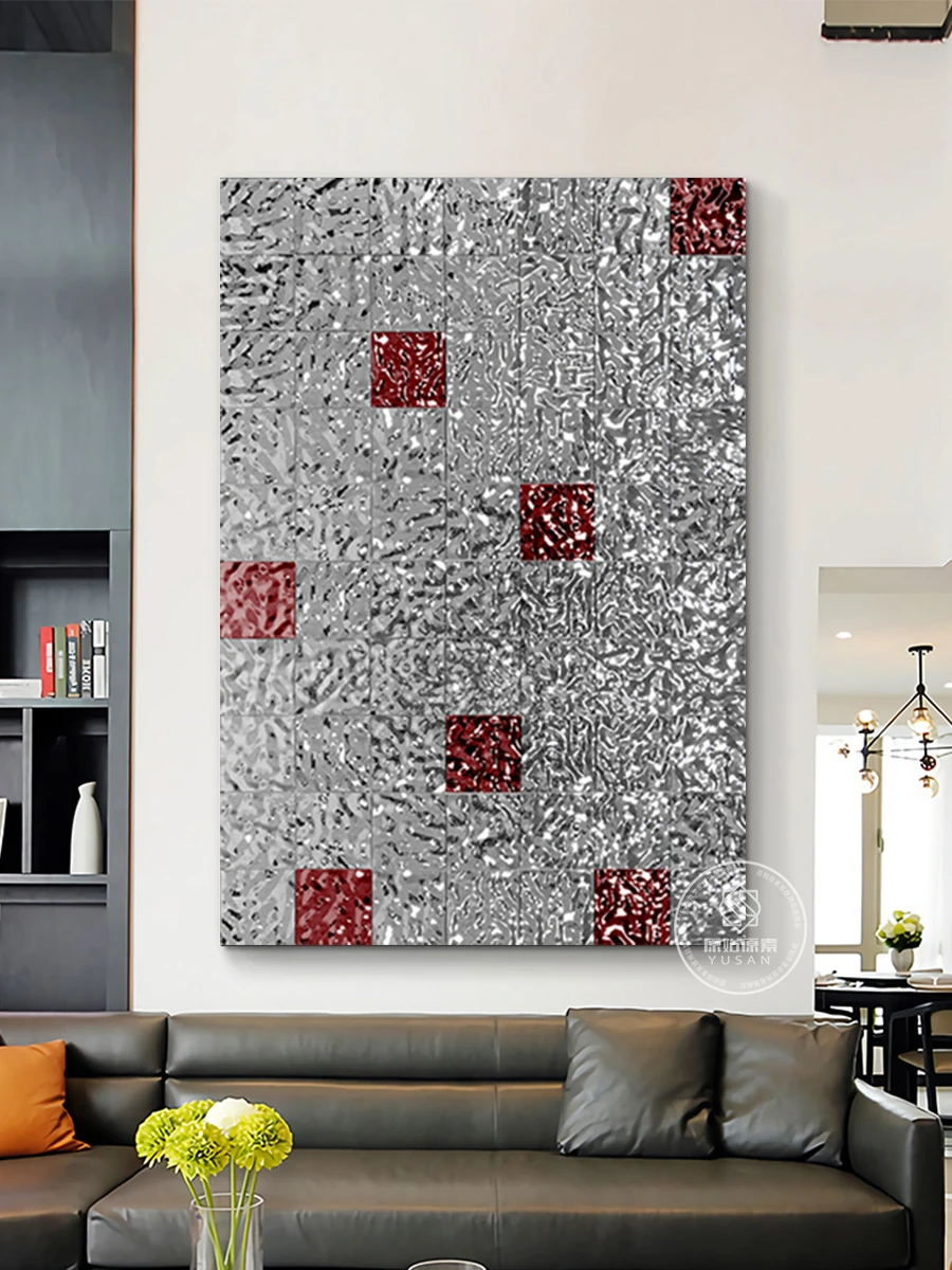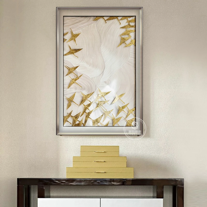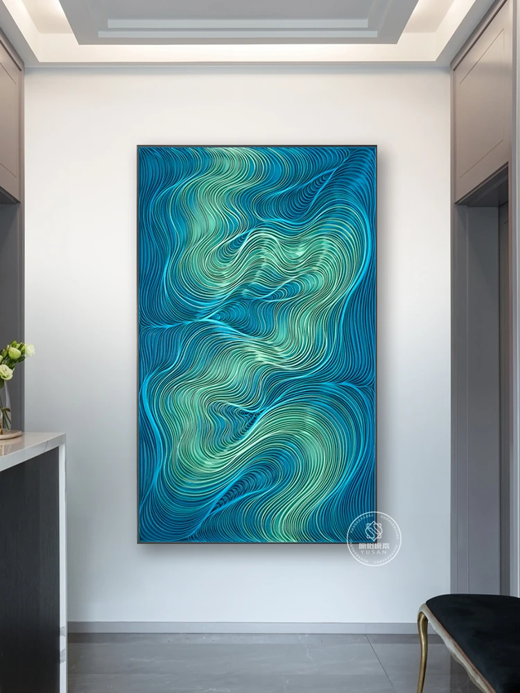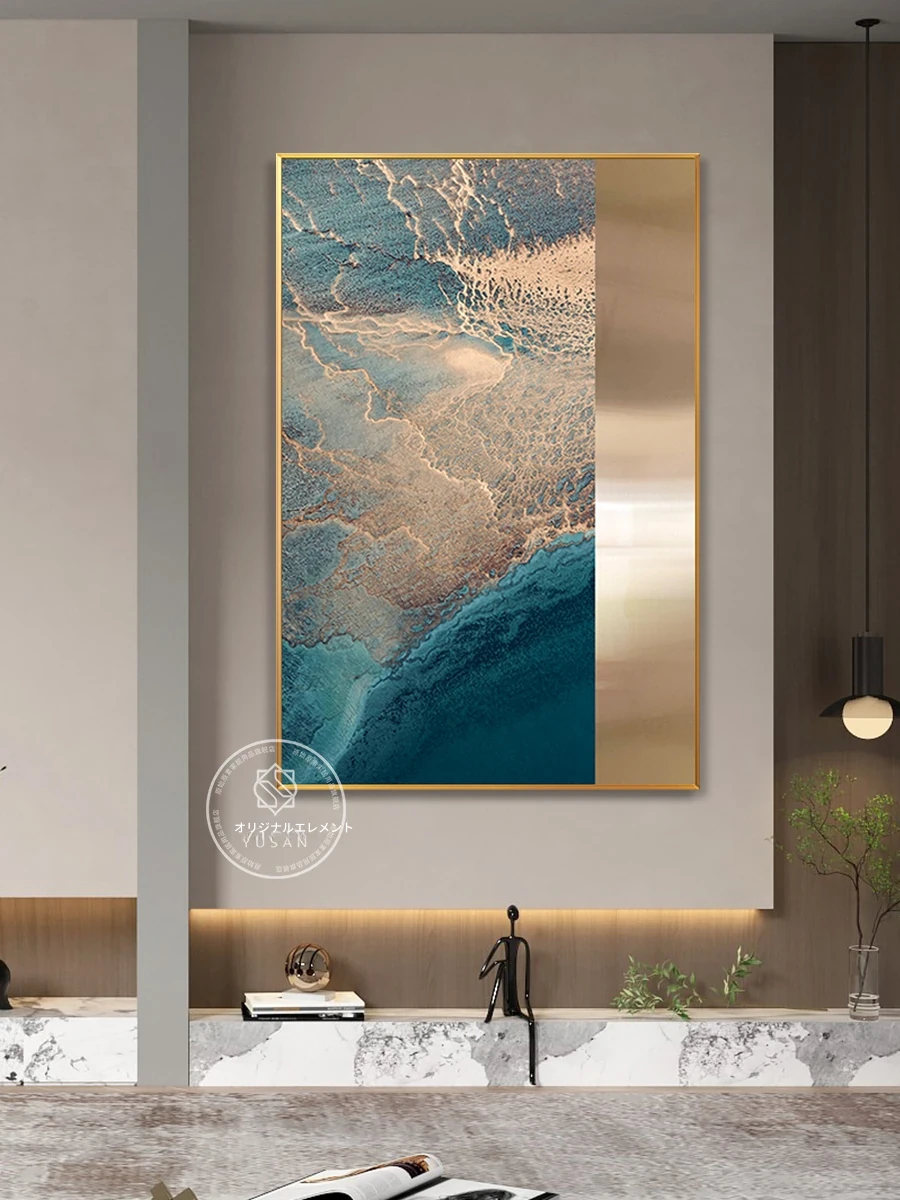 モダンミニマリスト玄関アート|手描きテクスチャーのグラデーション立体壁画|スタイリッシュな金属装飾画で空間を華やかに!