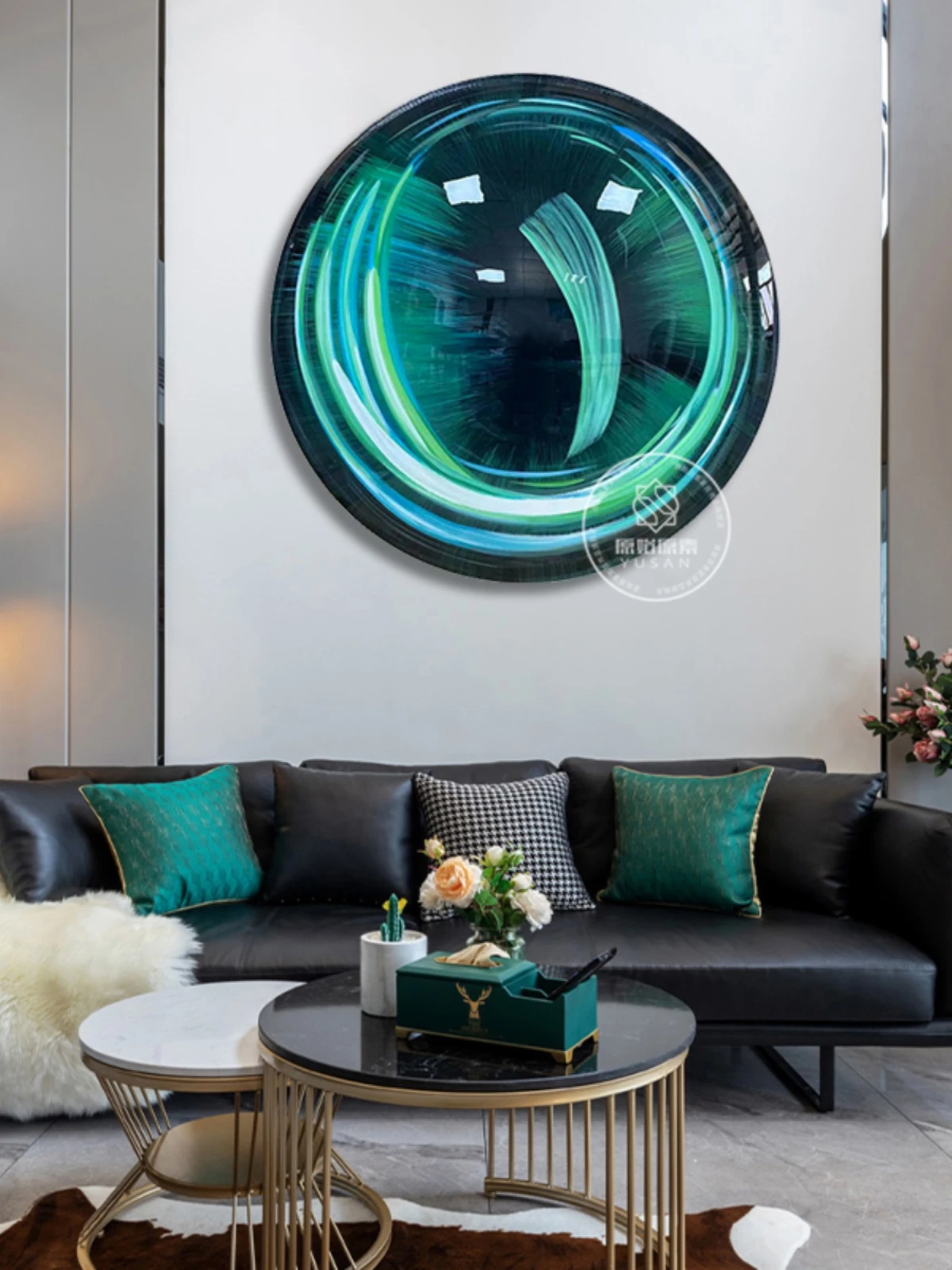 現代的な立体感のある樹脂製光沢画、円形のクリスタルセラミックグリーンアーチ付きの壁掛け装飾画。玄関を華やかに彩るおしゃれなインテリアアイテム!
