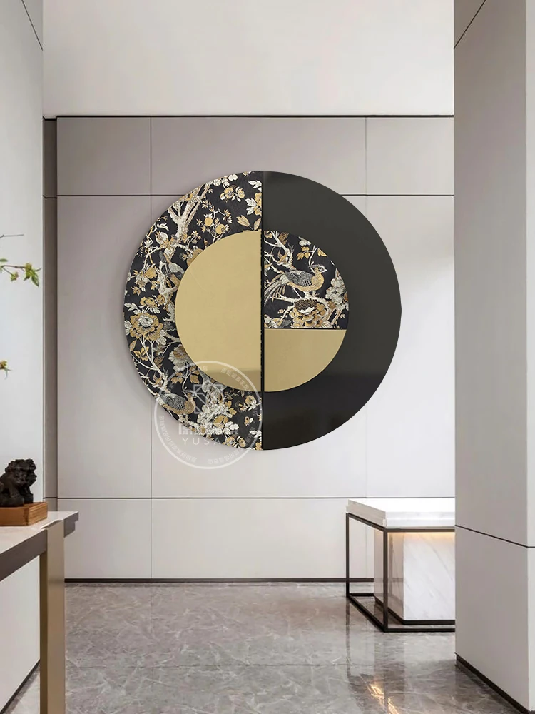 ラグジュアリーな円形花鳥刺繍アートパネル|立体的な金属装飾画|高級感溢れる玄関やリビングに最適なデザイナーズ掛け画で、インテリアを華やかに演出します。