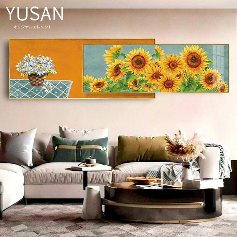 オリジナルエッセンスのモダンミニマリストな軽奢華インテリア、リビングや寝室にぴったりのひまわりの壁画。ソファの背景に最適!お部屋を華やかに彩るアートで、心地よい空間を演出します。