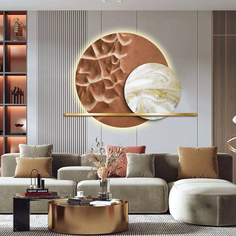 ラグジュアリー感溢れるリビングソファのための立体的に光る装飾画!シンプルで洗練されたLED壁画、モデルルームにもぴったりなハイエンドな掛け画で、空間を一新しませんか?