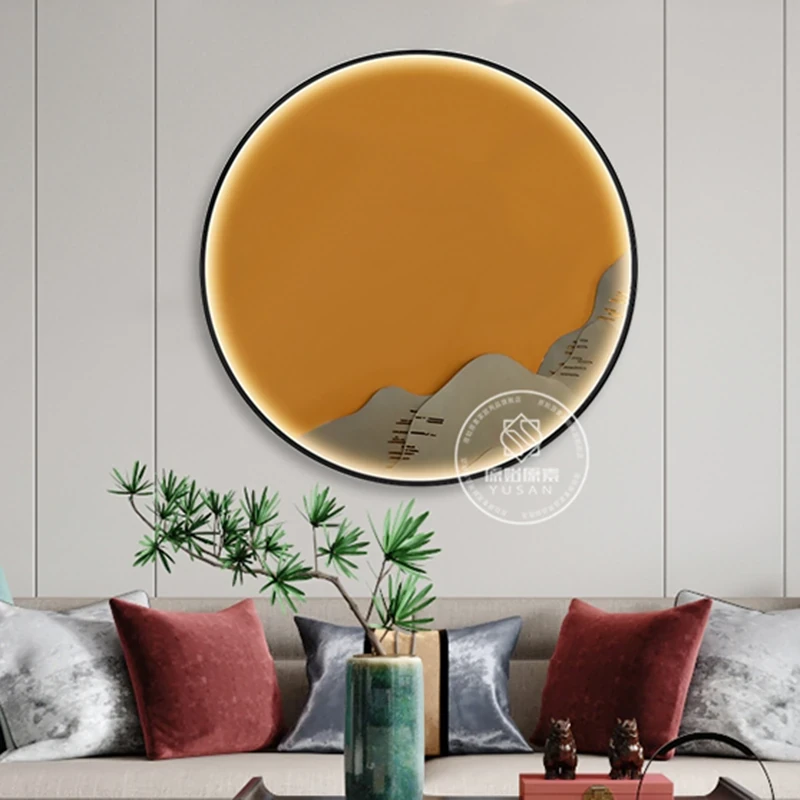 新中式シンプルな円形音声コントロールLEDライト装飾画 - 光る彫刻掛け画、立体的な玄関用円形壁画で、肌理豊かなデザインが魅力的!
