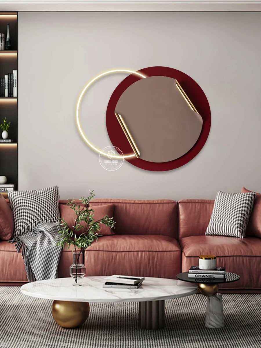 入居者必見!おしゃれな円形LEDライト付き立体壁画 - リビングや寝室に最適なソファ背景壁画で、心地よい雰囲気を演出します。