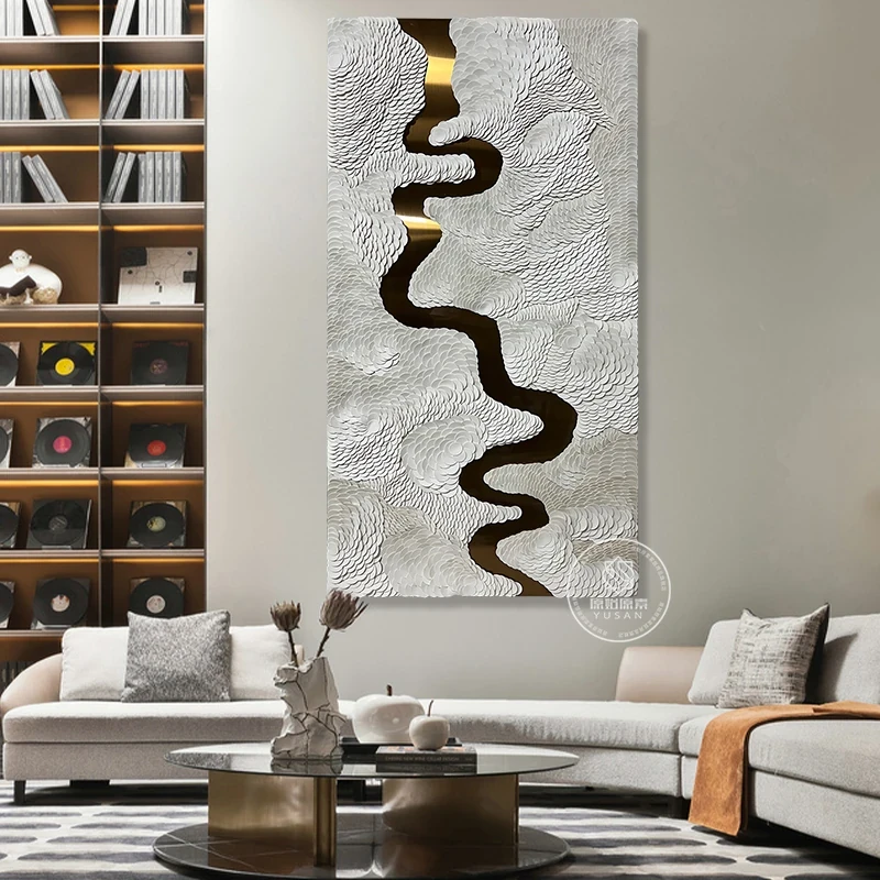 エントランス用3D立体高級軽奢壁画 - モダンなリビングや廊下にぴったりのスタイリッシュなインテリア装飾!ステンレス製の魅力的なアートで、洗練された空間を演出します。