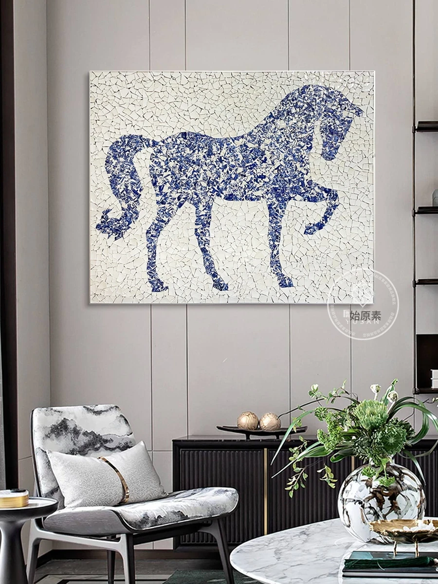 青花瓷の装飾画 古い陶器の破片を使用した麒麟の掛け画 新中式スタイルの馬の陶器壁画 ホテルのロビーやモデルルームに最適な大画 優雅な雰囲気を演出します!