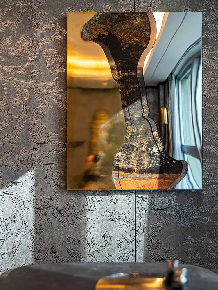 中古風の光るアートパネル - ラグジュアリーなリビングにぴったり!金属製の立体的なデコレーションが新中式の書斎や玄関を華やかに演出します。おしゃれで洗練された空間を実現する一品です。