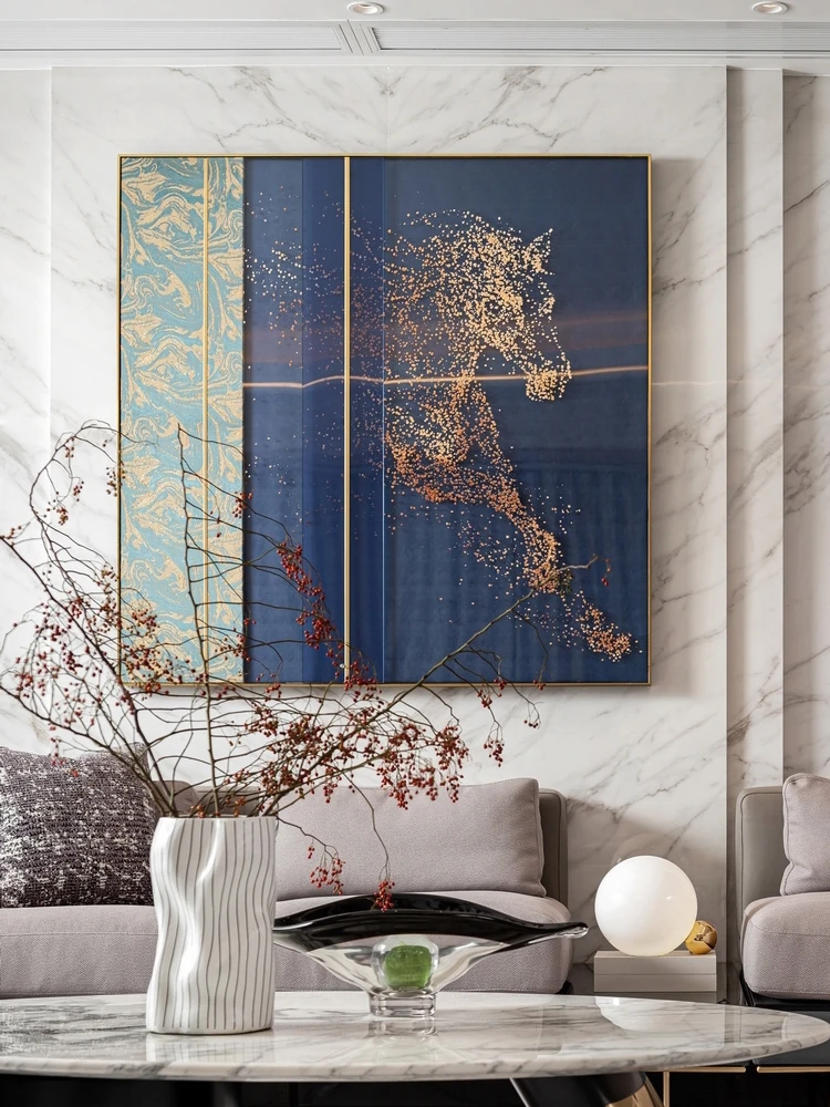 モダンミニマル立体アクリルリビングルームデコレーションアート ソファ背景に最適な大迫力の馬の成功を象徴する掛け軸 玄関壁画にもぴったり!